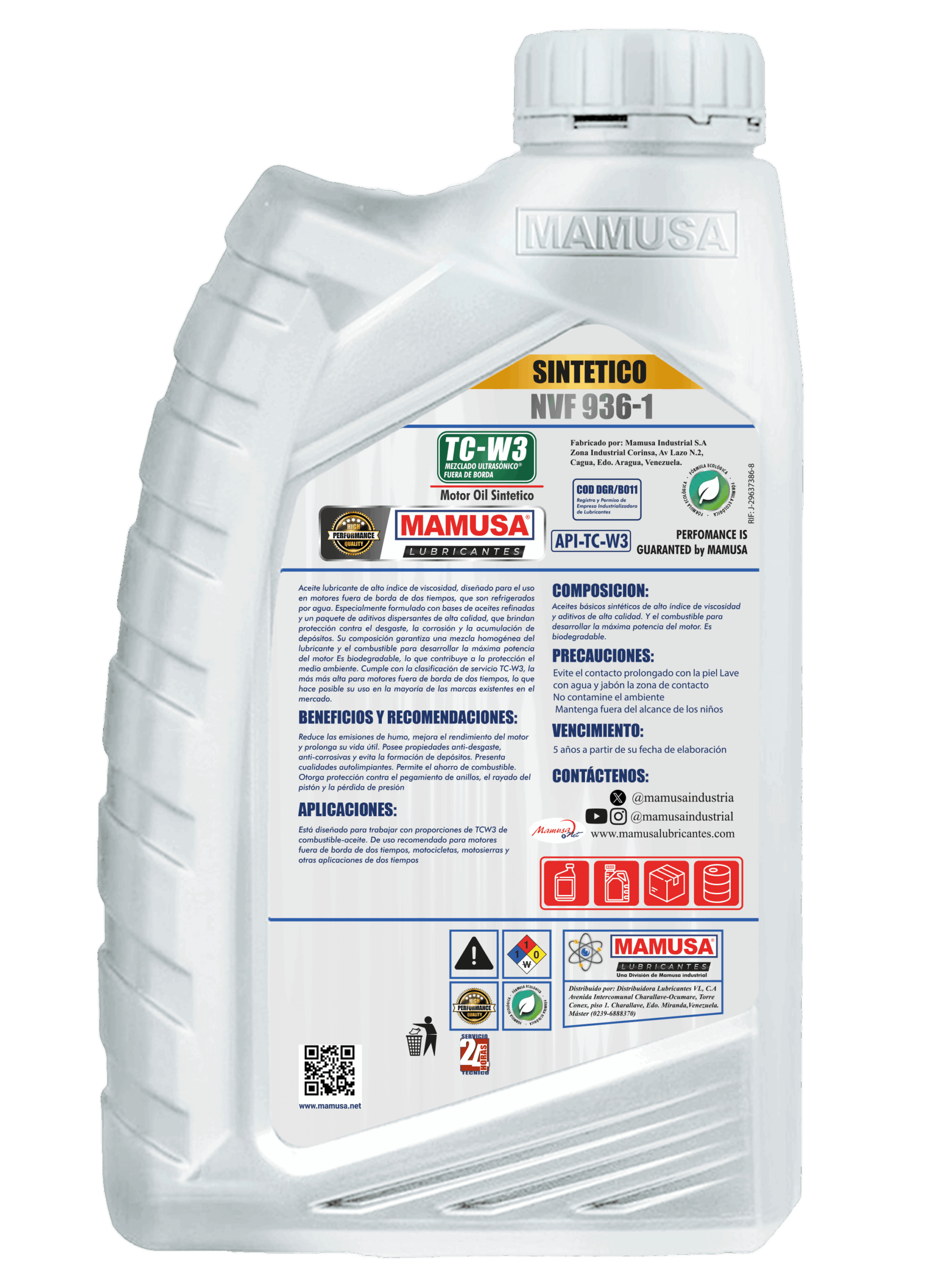 Su composición garantiza una mezcla homogénea del lubricante y el combustible para desarrollar la máxima potencia del motor Es biodegradable, lo que contribuye a la protección el medio ambiente. Cumple con la clasificación de servicio TC-W3, la más más alta para motores fuera de borda de dos tiempos, lo que hace posible su uso en la mayoría de las marcas existentes en el mercado.