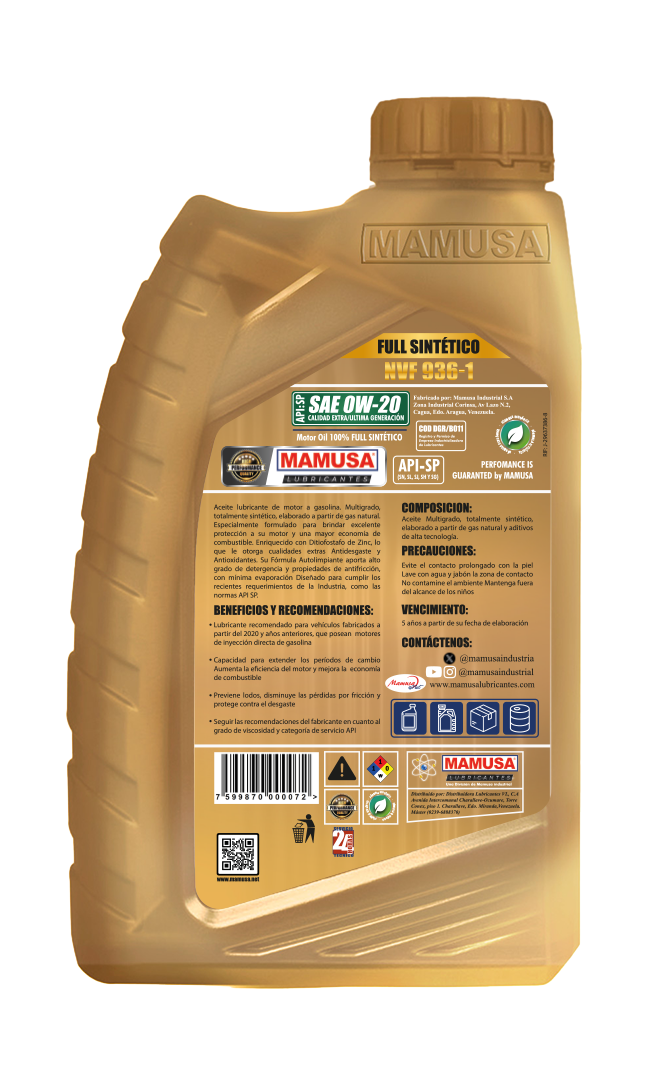 Su Fórmula Autolimpiante aporta alto grado de detergencia y propiedades de antifricción, con mínima evaporación Diseñado para cumplir los recientes requerimientos de la Industria, como las normas API SP. Lubricante recomendado para vehículos fabricados a partir del 2020 y años anteriores, que posean motores de inyección directa de gasolina.